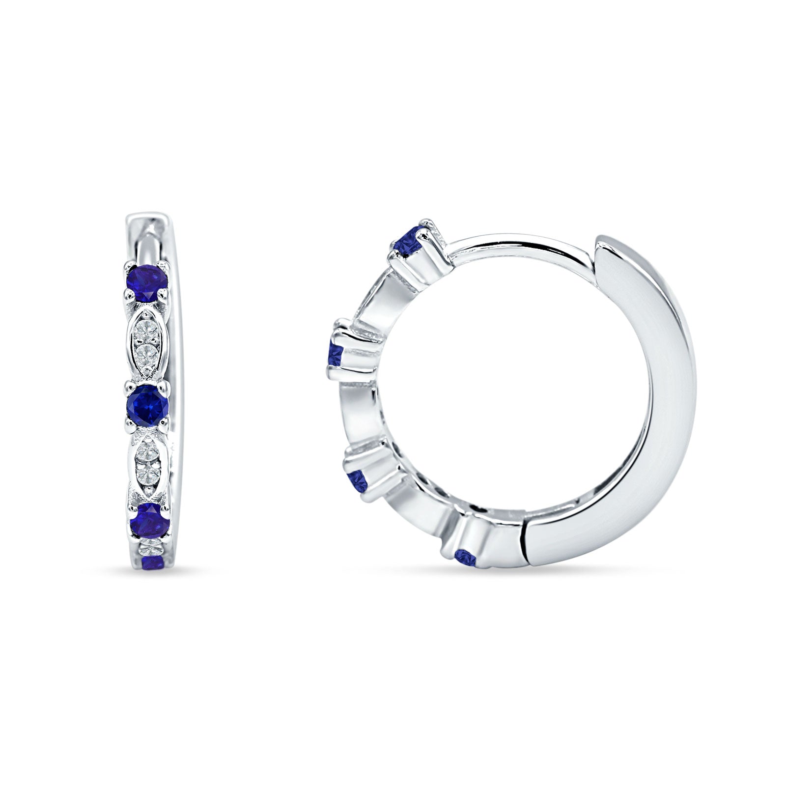 Round Cluster CZ & Blue Sapphire CZ Huggie Hoop Earrings