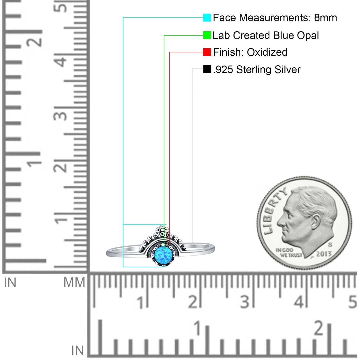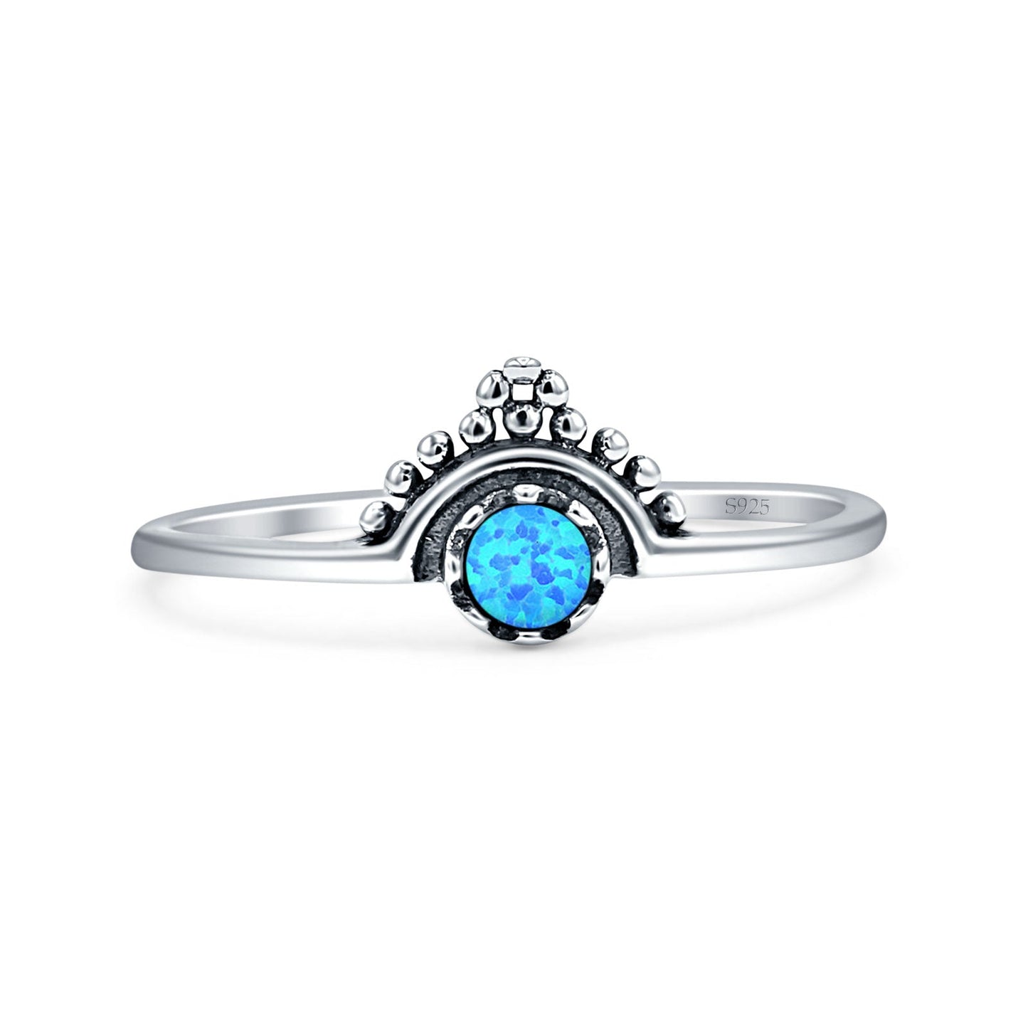 This minimalist 8mm round Lab Created Blue Opal bali ring features a radiant opal centerpiece set in oxidized 925 sterling silver with curved, vintage-style beaded detailing. A perfect blend of boho charm and timeless elegance, ideal for wholesale statement ring collections.