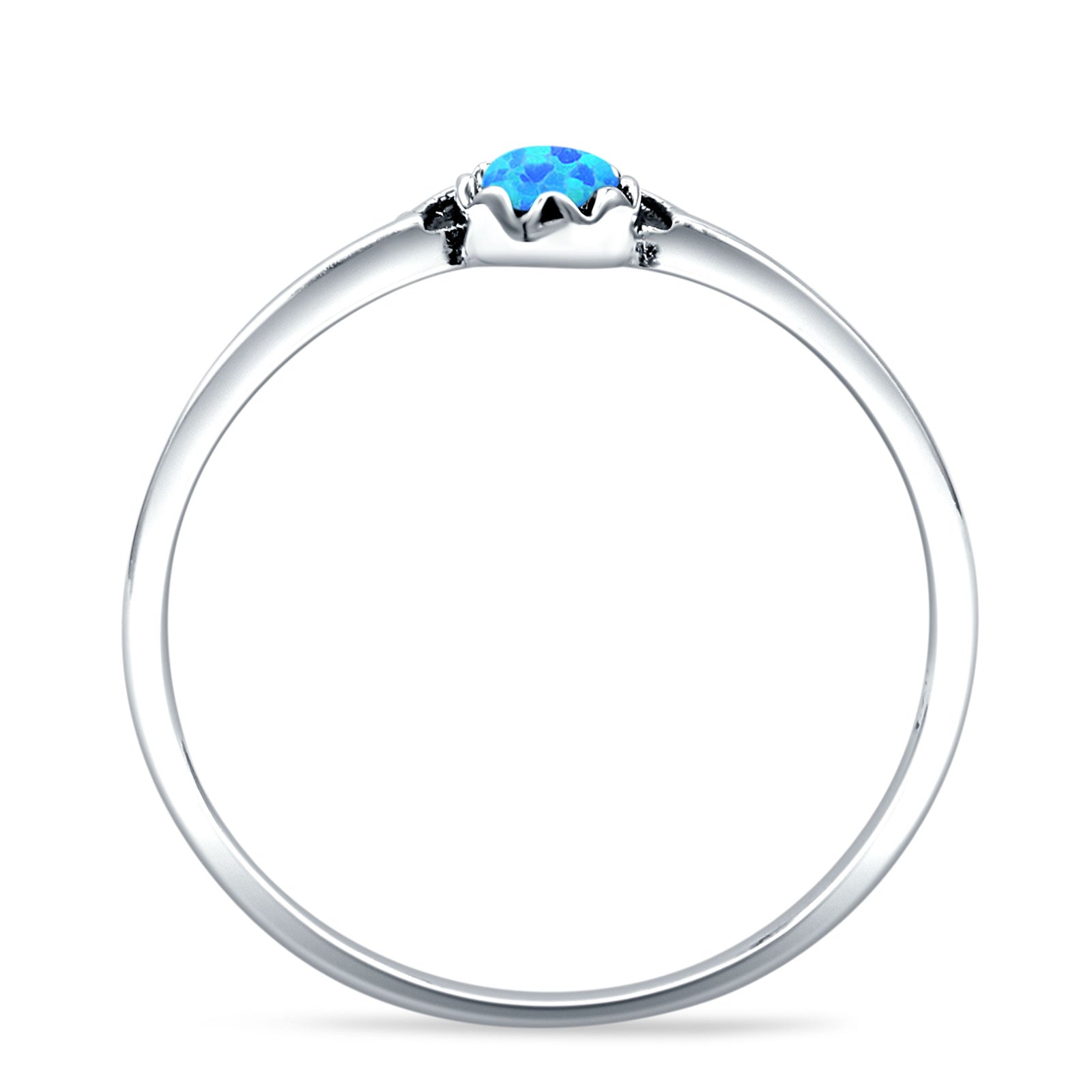 Round Lab Created Blue Opal Bali Ring Oxidized