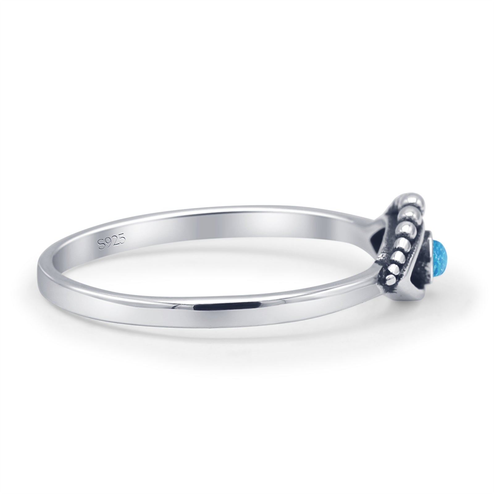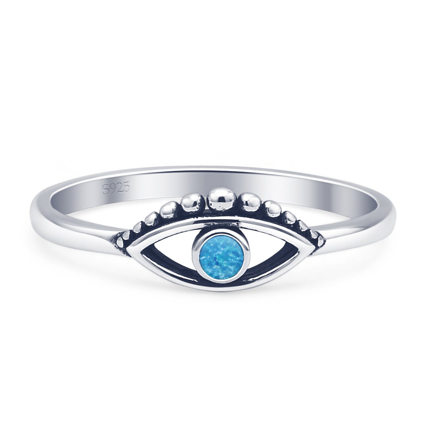 Round Lab Created Blue Opal Evil Eye Ring Oxidized