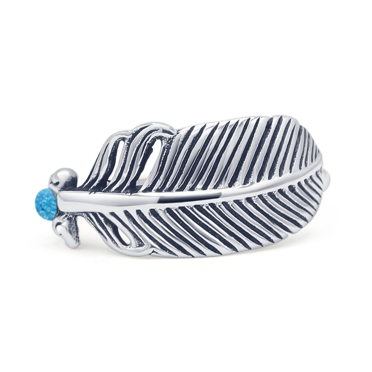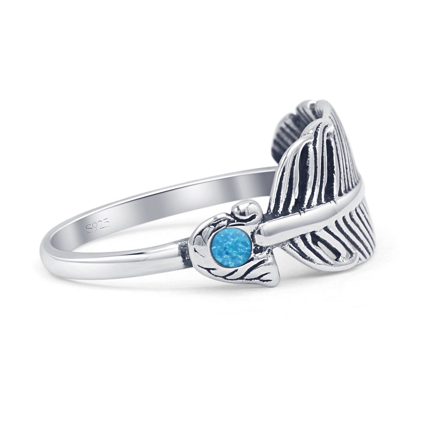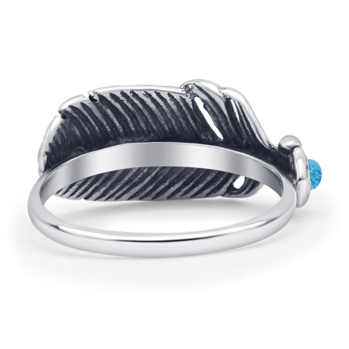 Round Lab Created Blue Opal Feather Ring Oxidized