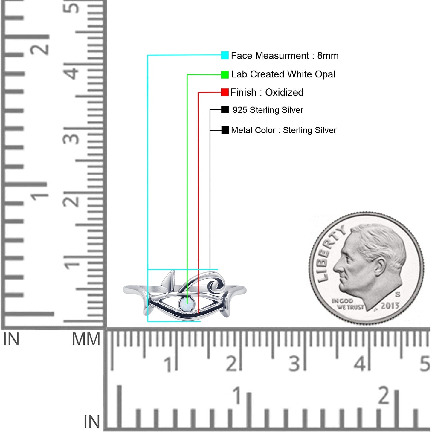 ☉Ring Design: Oxidized Round Lab Created White Opal Eye Of Horus Ring.