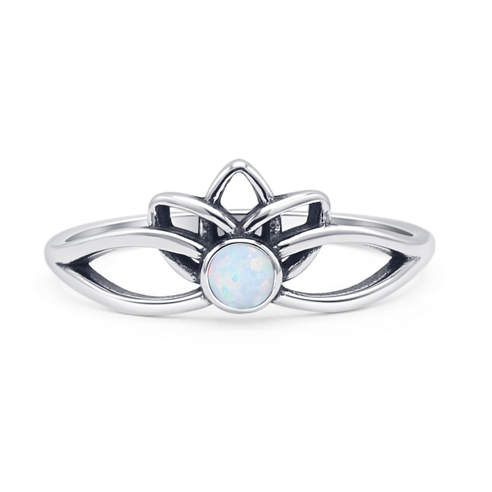 This ring merges the two concepts of symbolism and style wonderfully. It is a 925 sterling silver ring with detailed oxidized filigree, it features a 7.7mm round lab created white opal lotus and it has a little bit of glow to it. The lotus and glowing opal combine to create a statement piece that is spiritually and nature inspired. This ring can be worn every day and makes a wonderful gift!