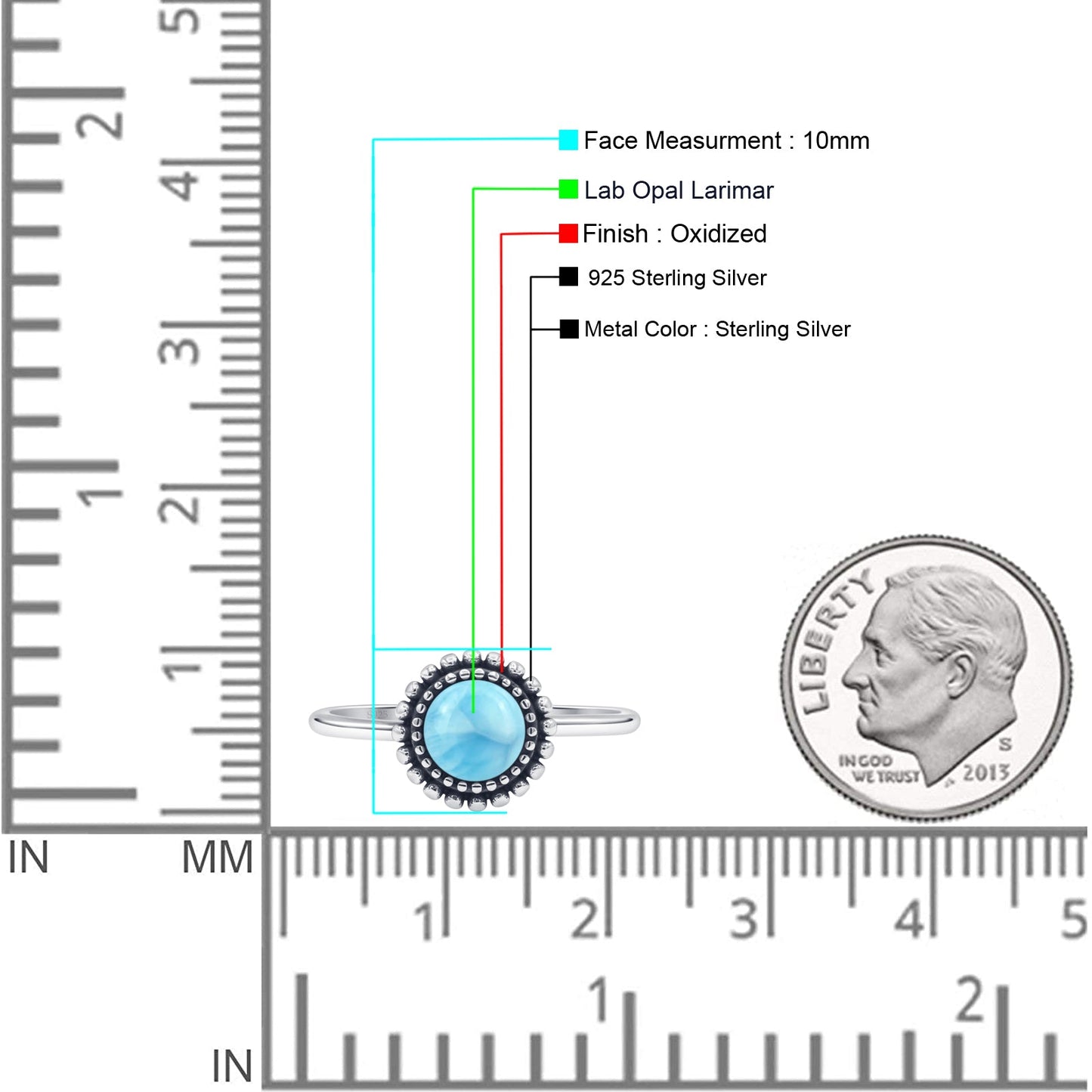 ☉Ring Design: Oxidized Round Larimar Beaded Ring.