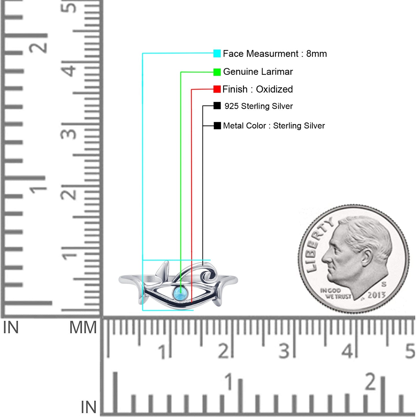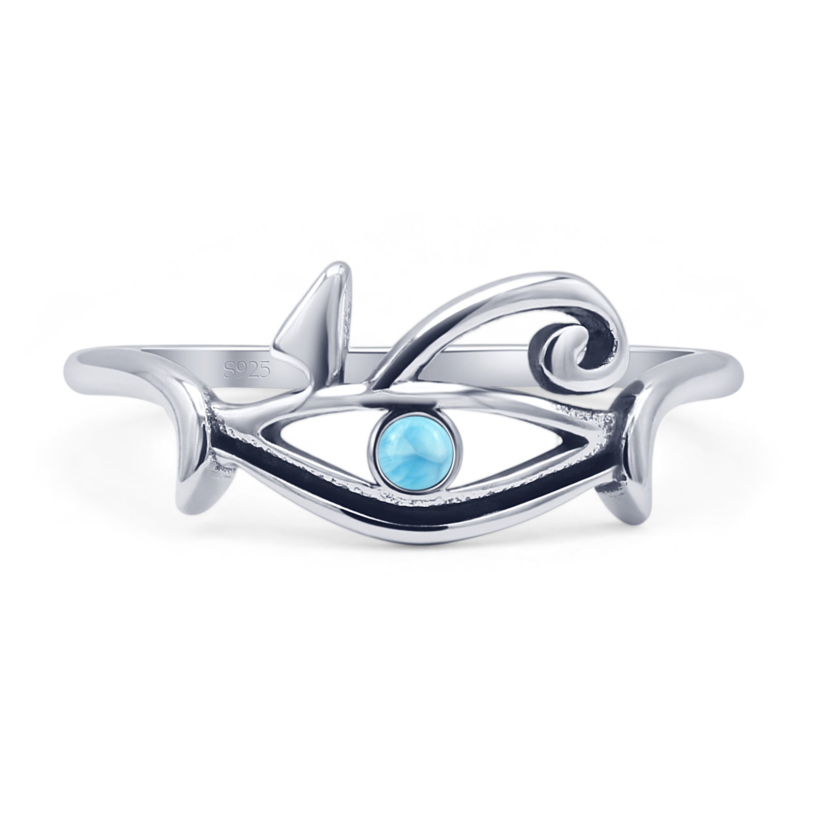 Round Larimar Eye Of Horus Rings.