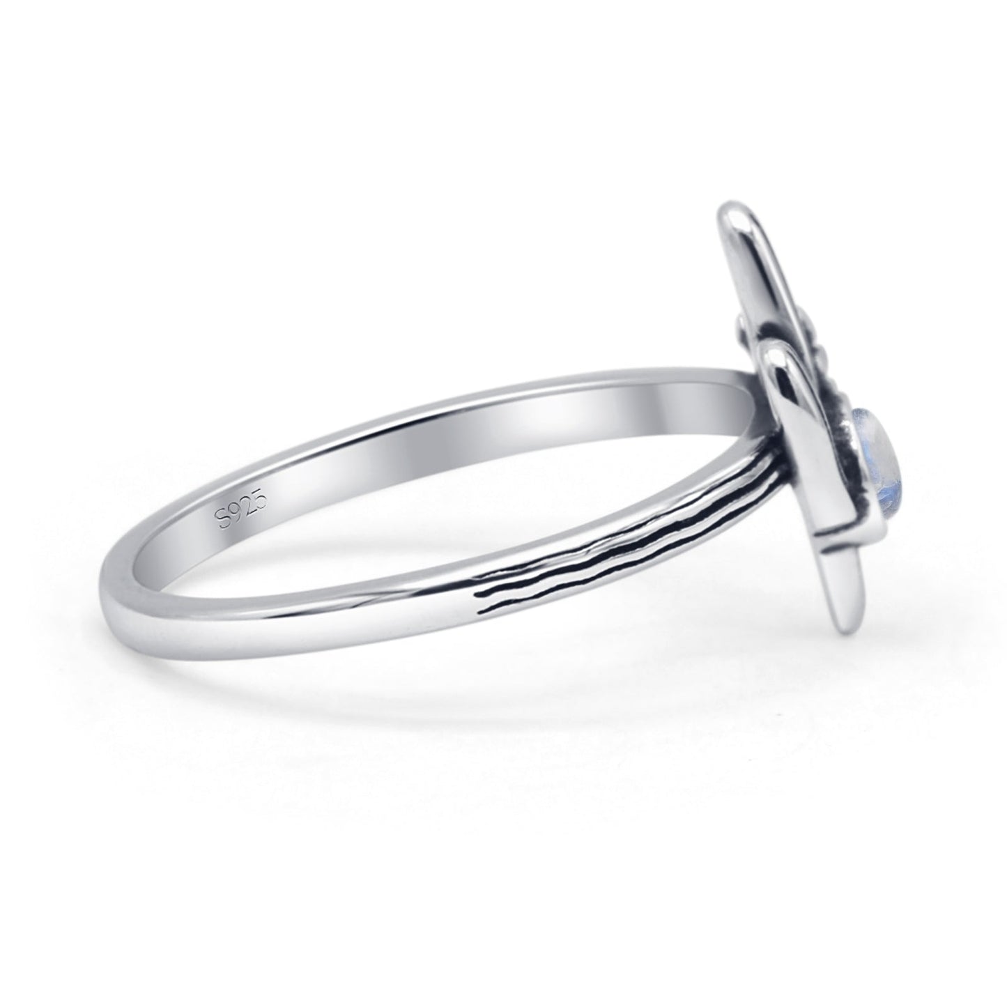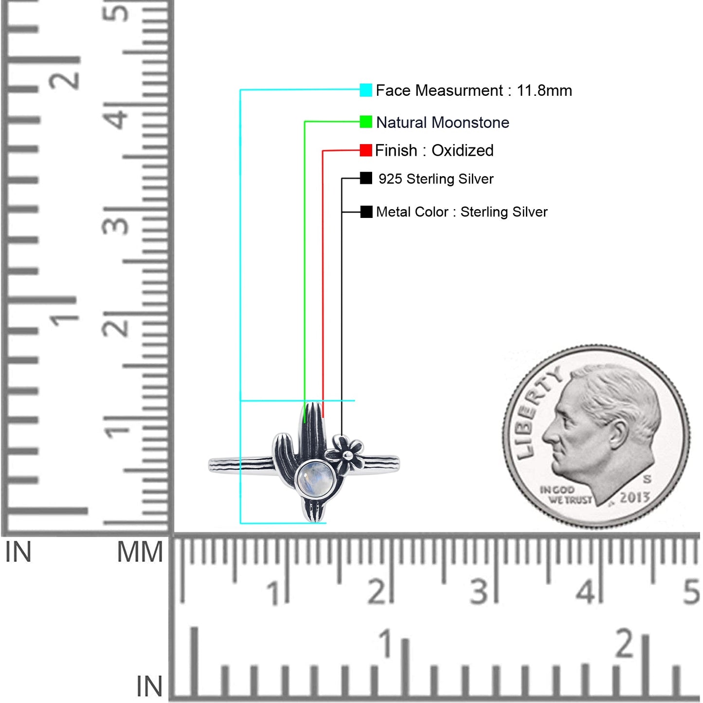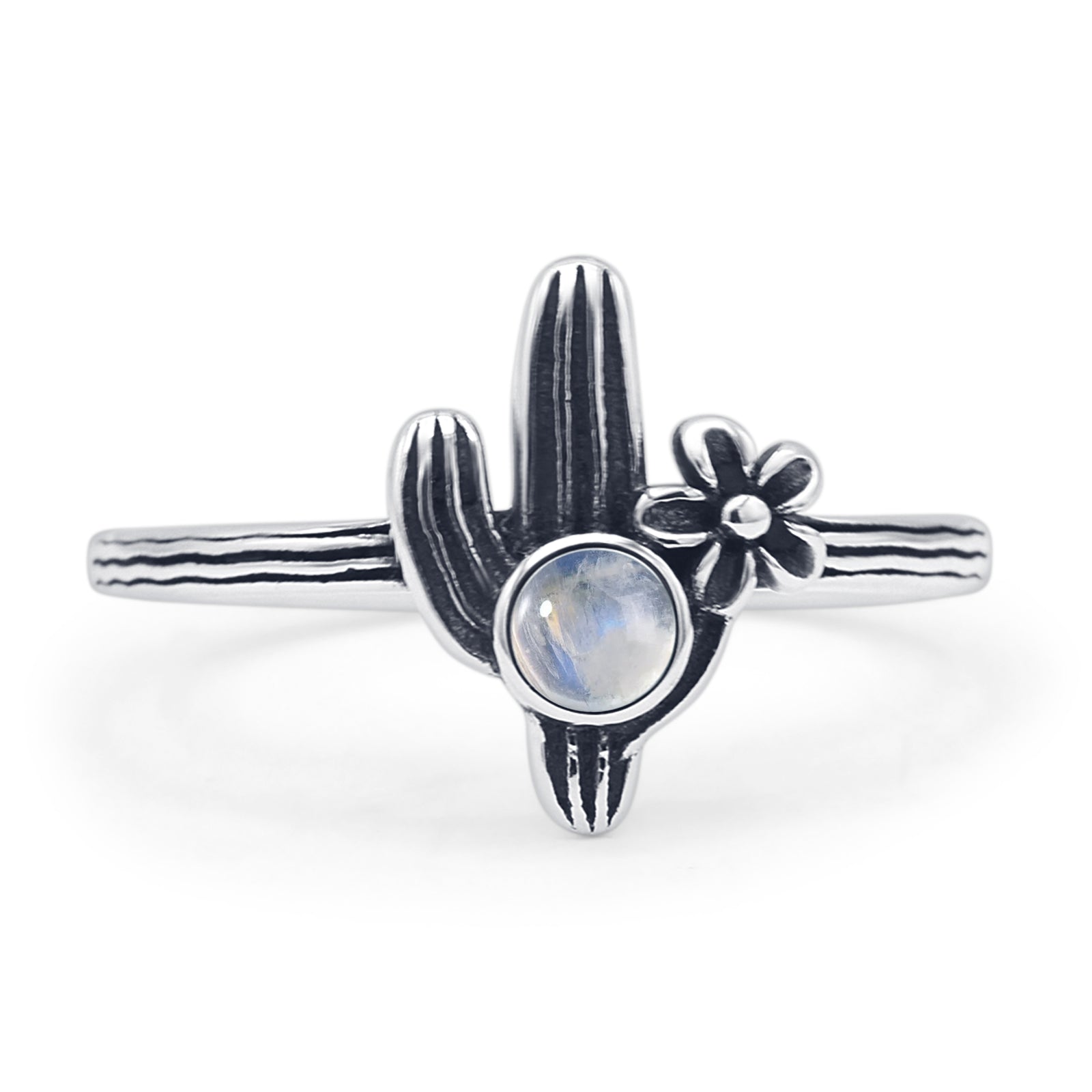 ☉Ring Design: Round Moonstone Oxidized Flower Cactus Ring.