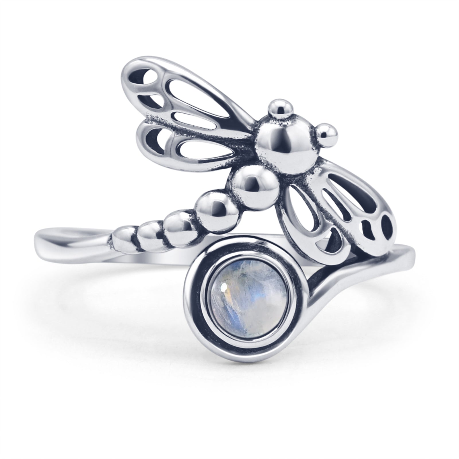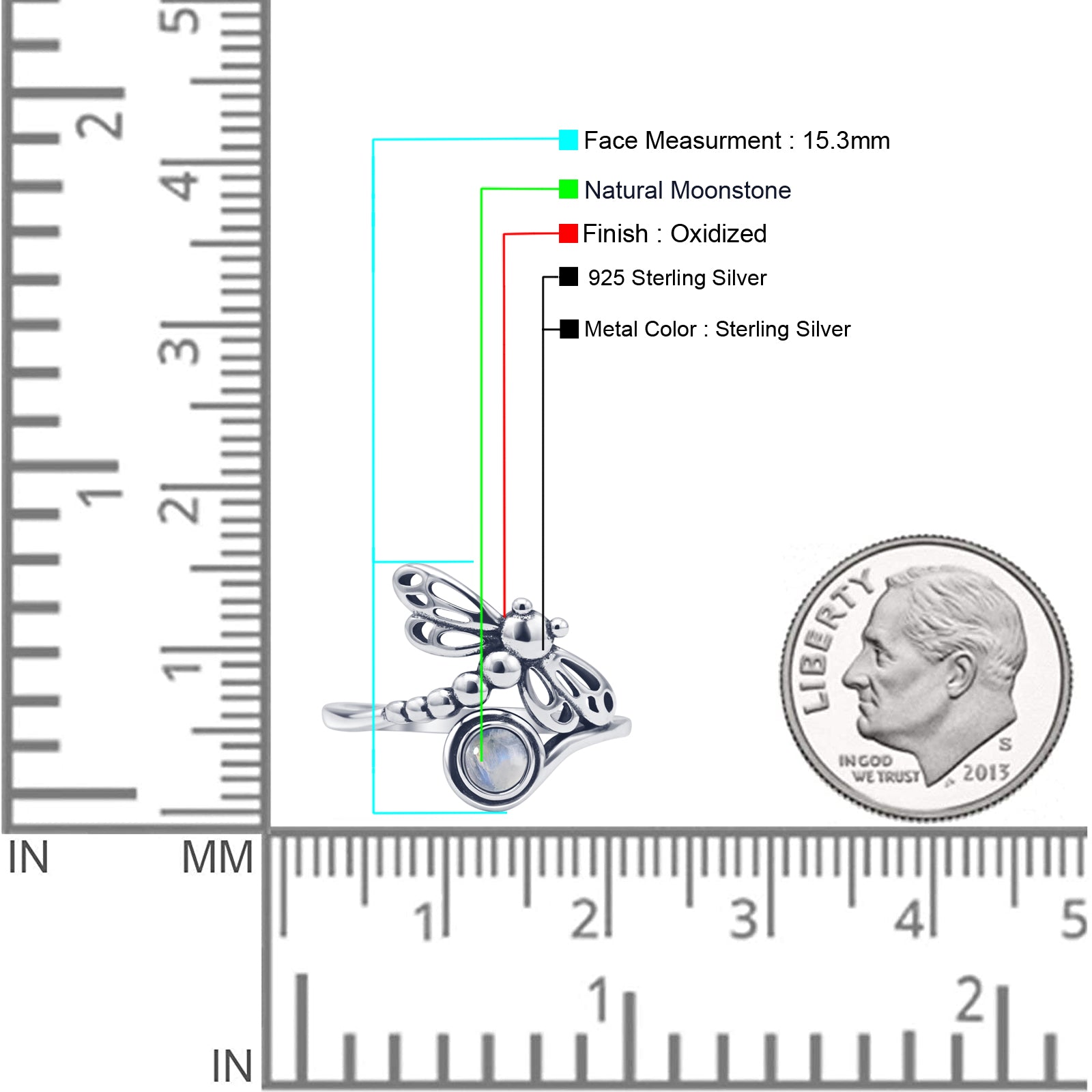 ☉Ring Design: Round Moonstone Oxidized Filigree Dragonfly Ring.