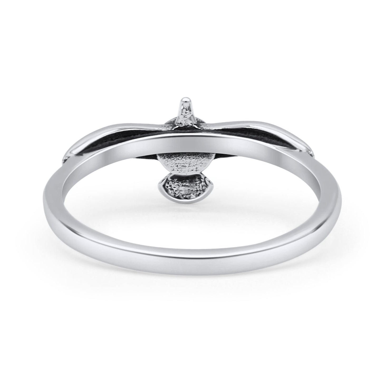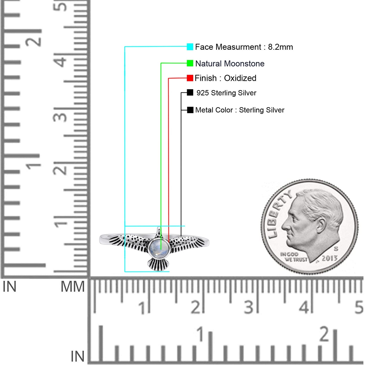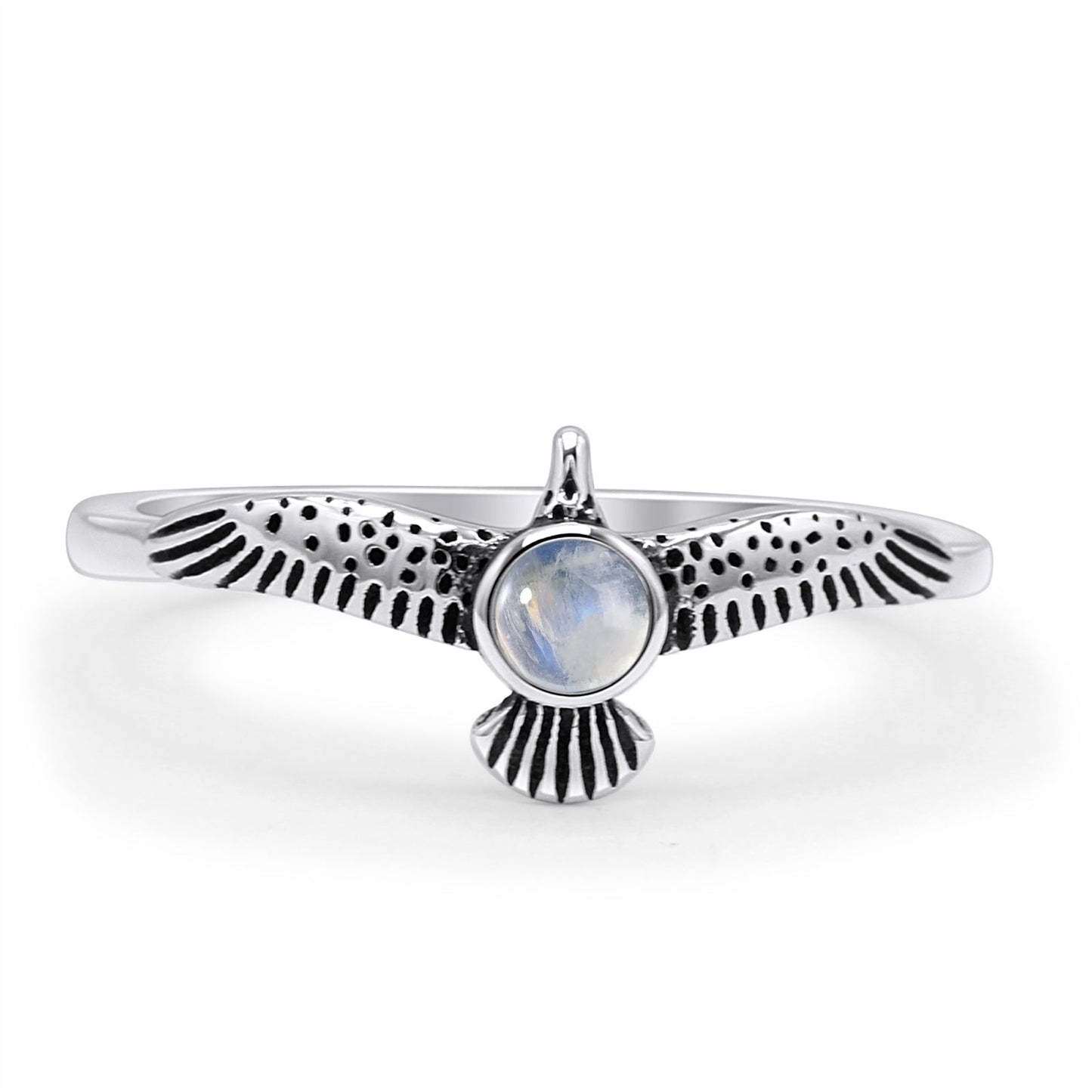 ☉Ring Design: Oxidized Round Moonstone Eagle Ring.