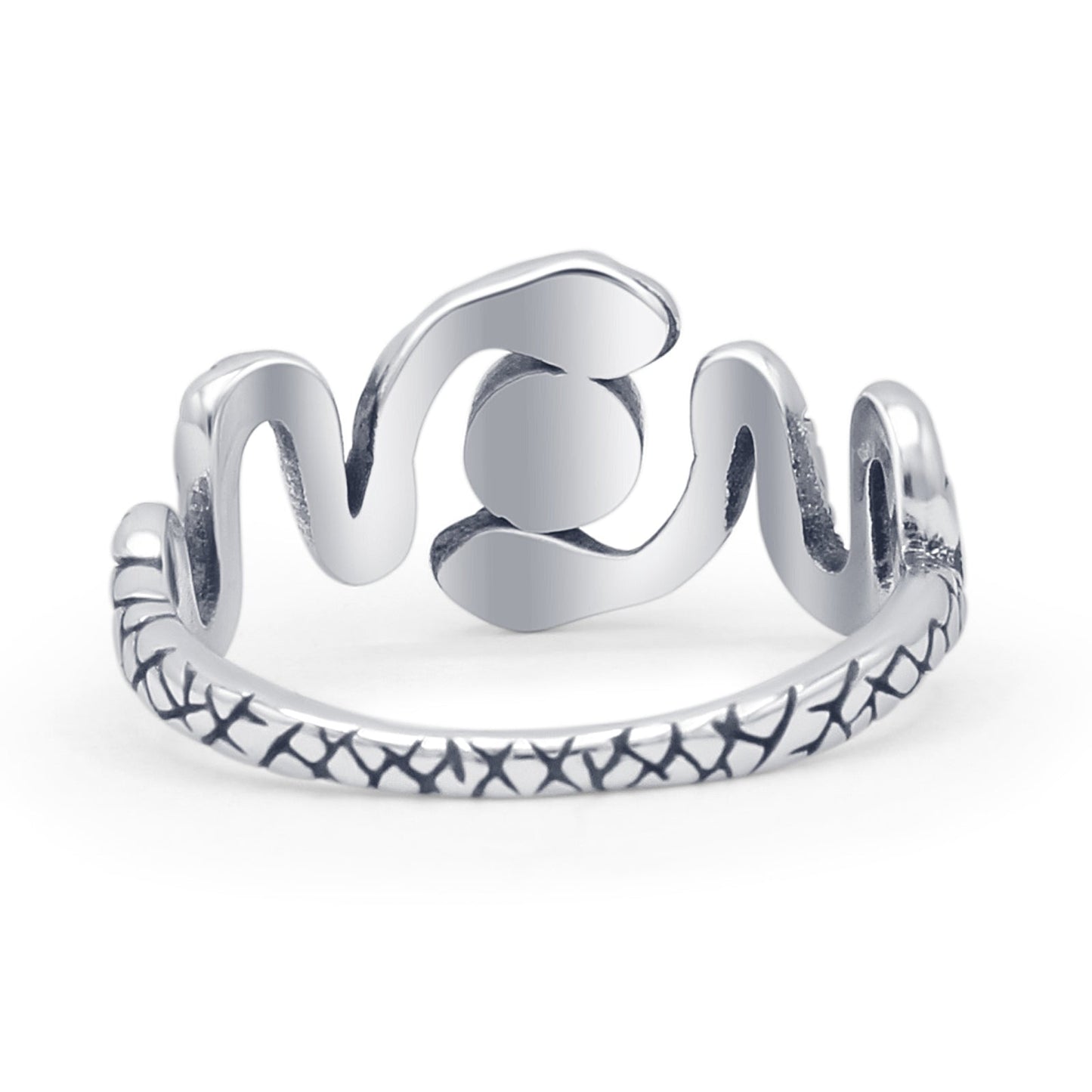 Expressive elegance at its finest with this minimalist 9.6mm snake ring utilizing oxidized 925 sterling silver with an antiquated-style finish. The coiled serpent symbolizes transformation and power, making it an impactful statement ring and a great gift for her.