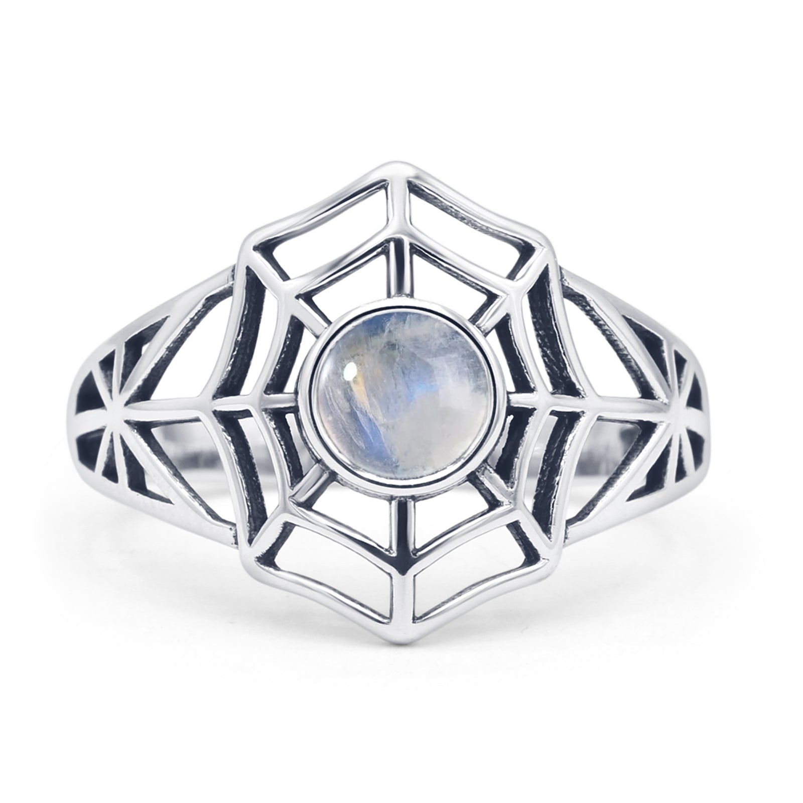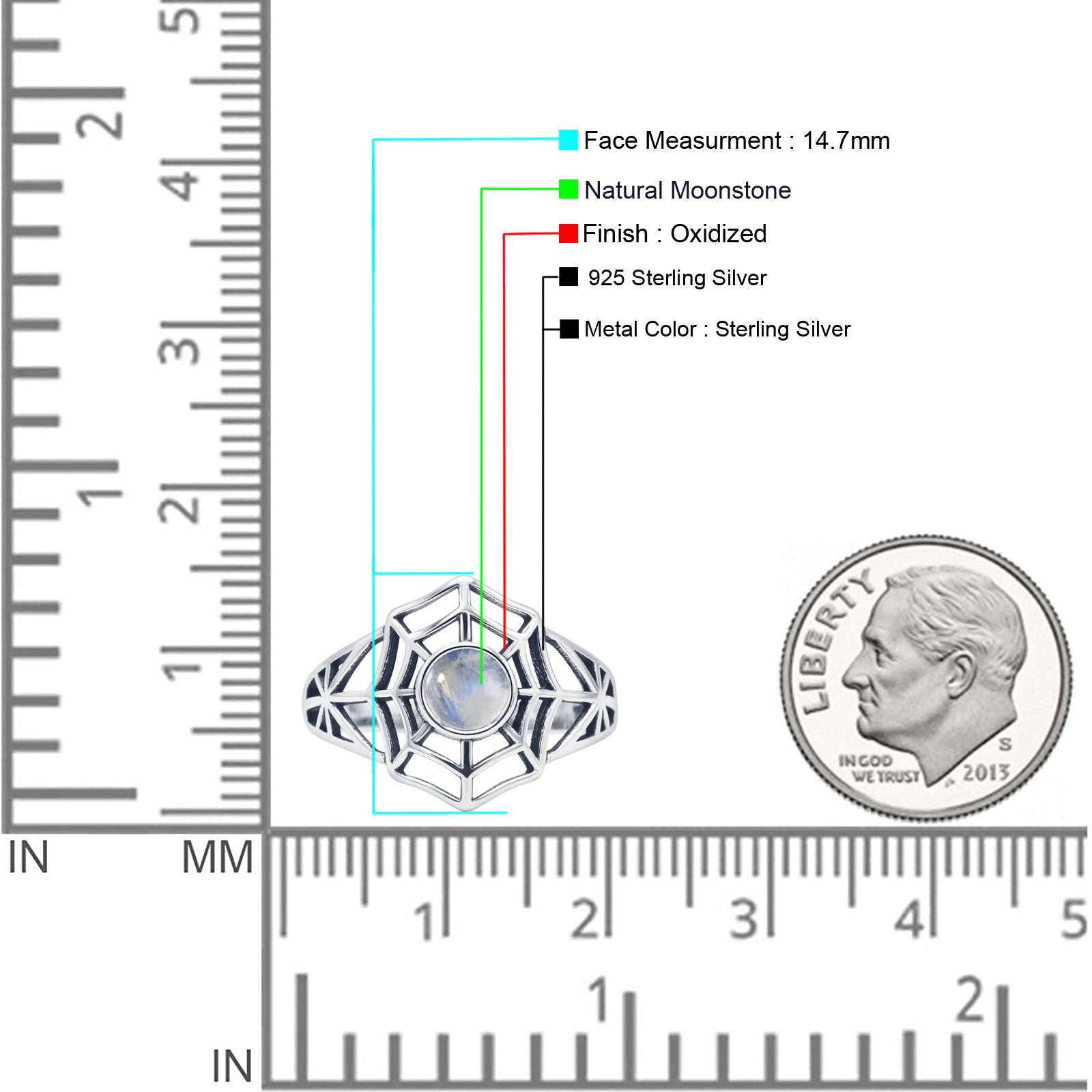 ☉Ring Design: Round Moonstone Oxidized Filigree Spiderweb Ring.