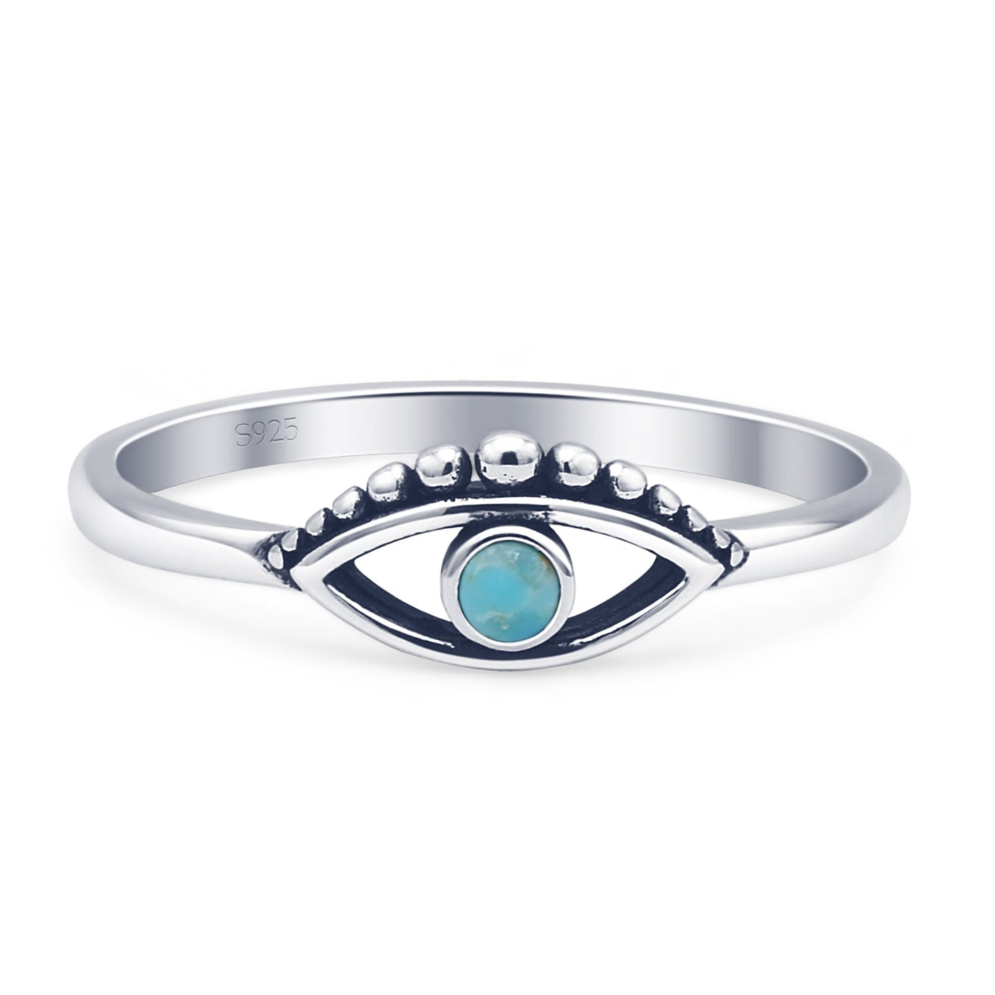 ☉Ring Design: Round Turquoise Oxidized Evil Eye Ring.