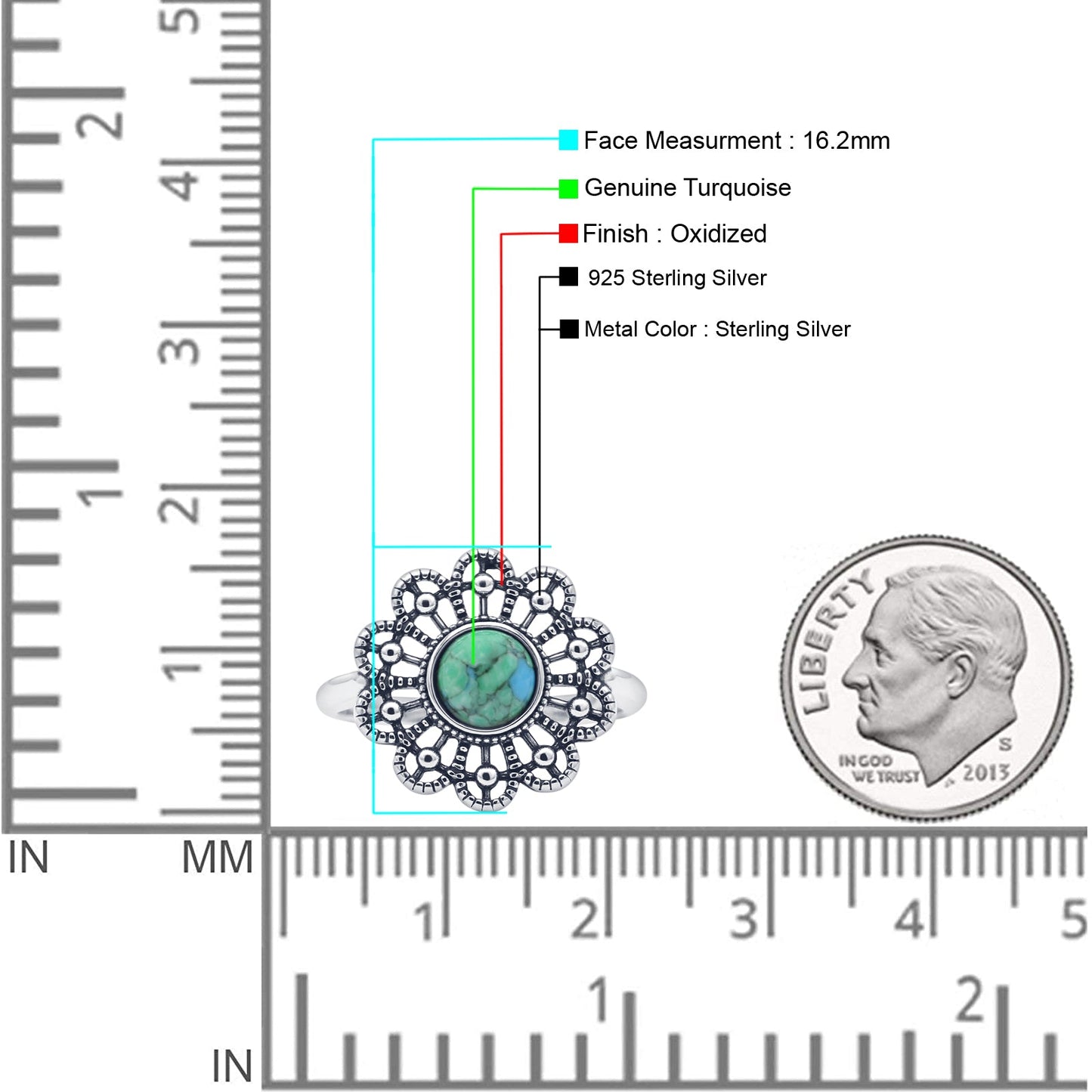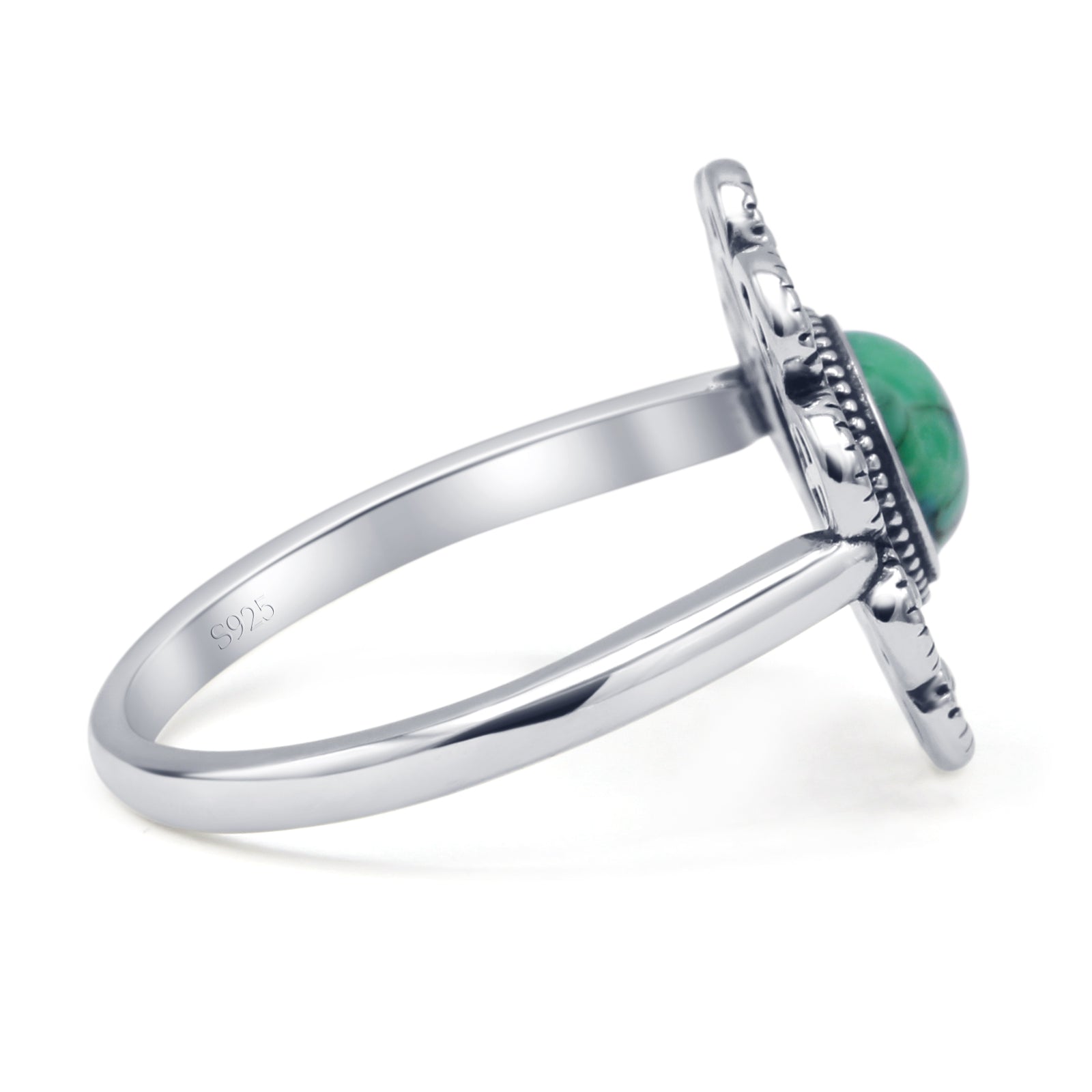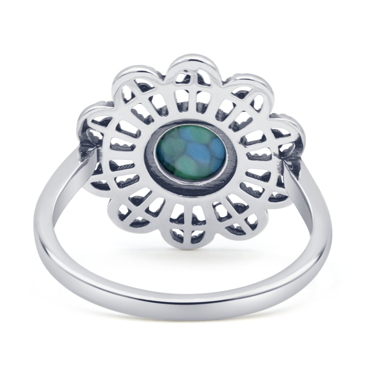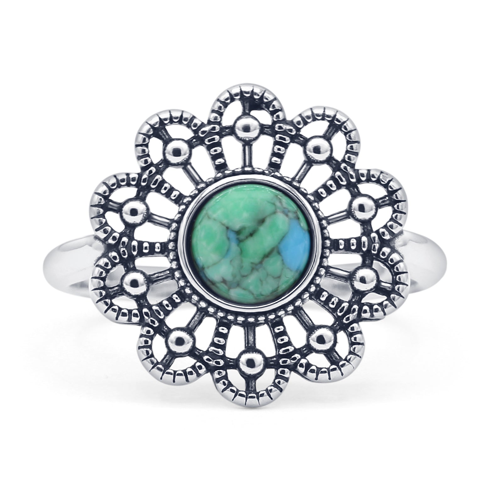 ☉Ring Design: Oxidized Round Turquoise Flower Ring.