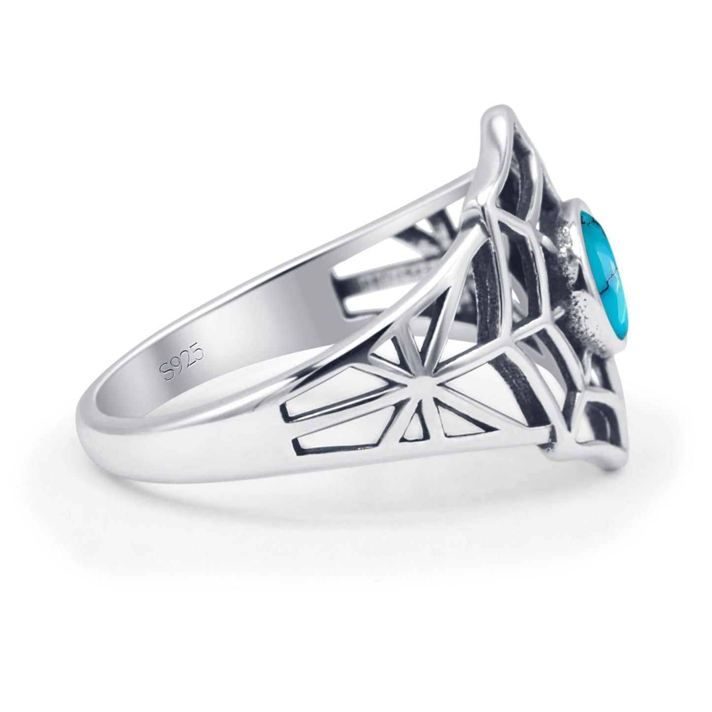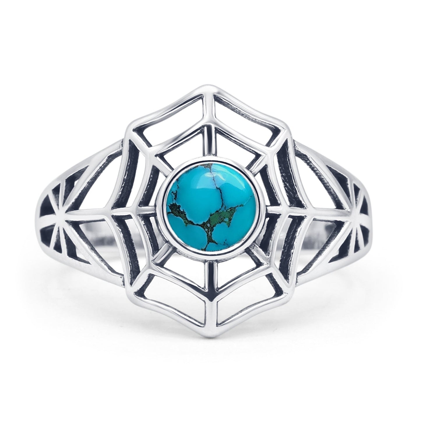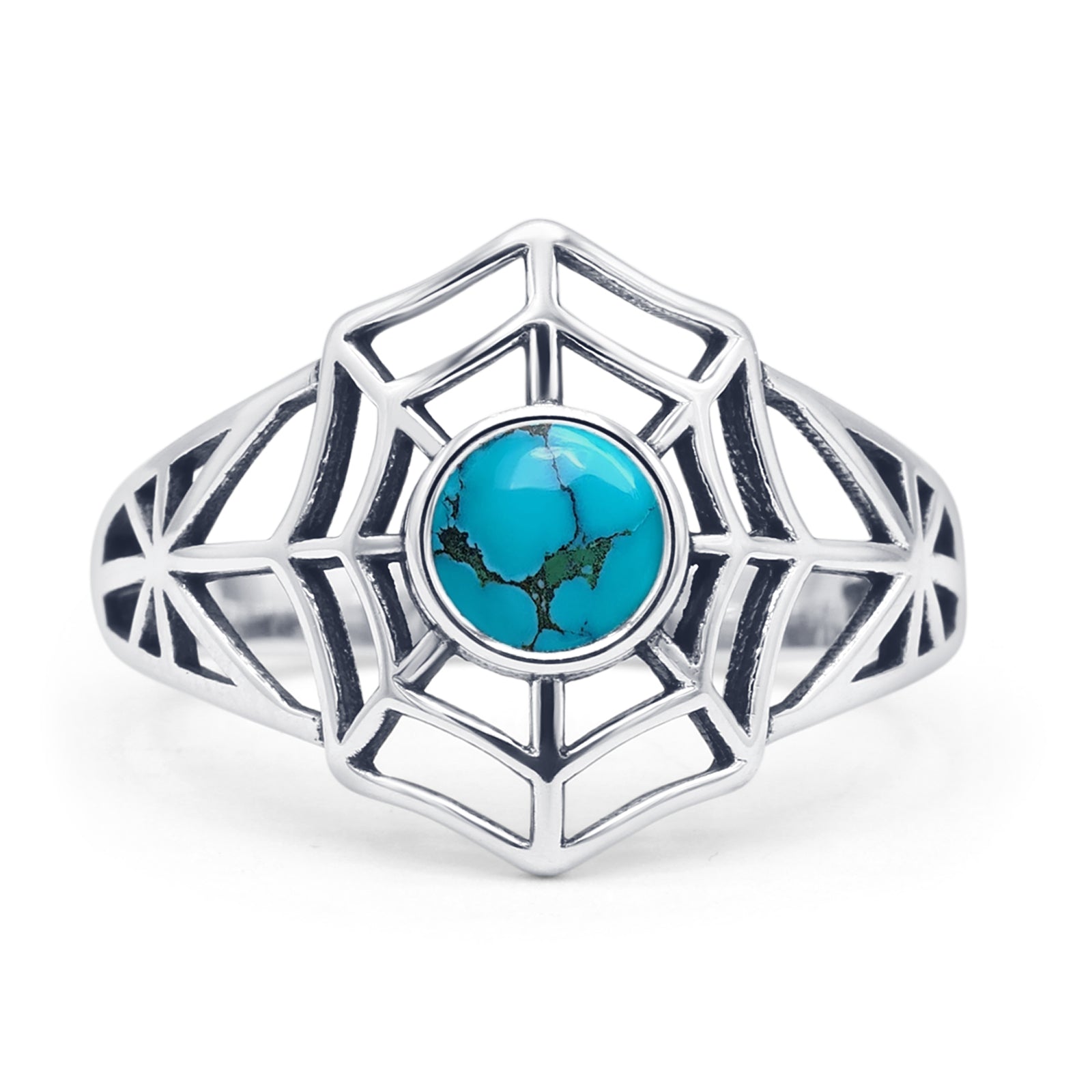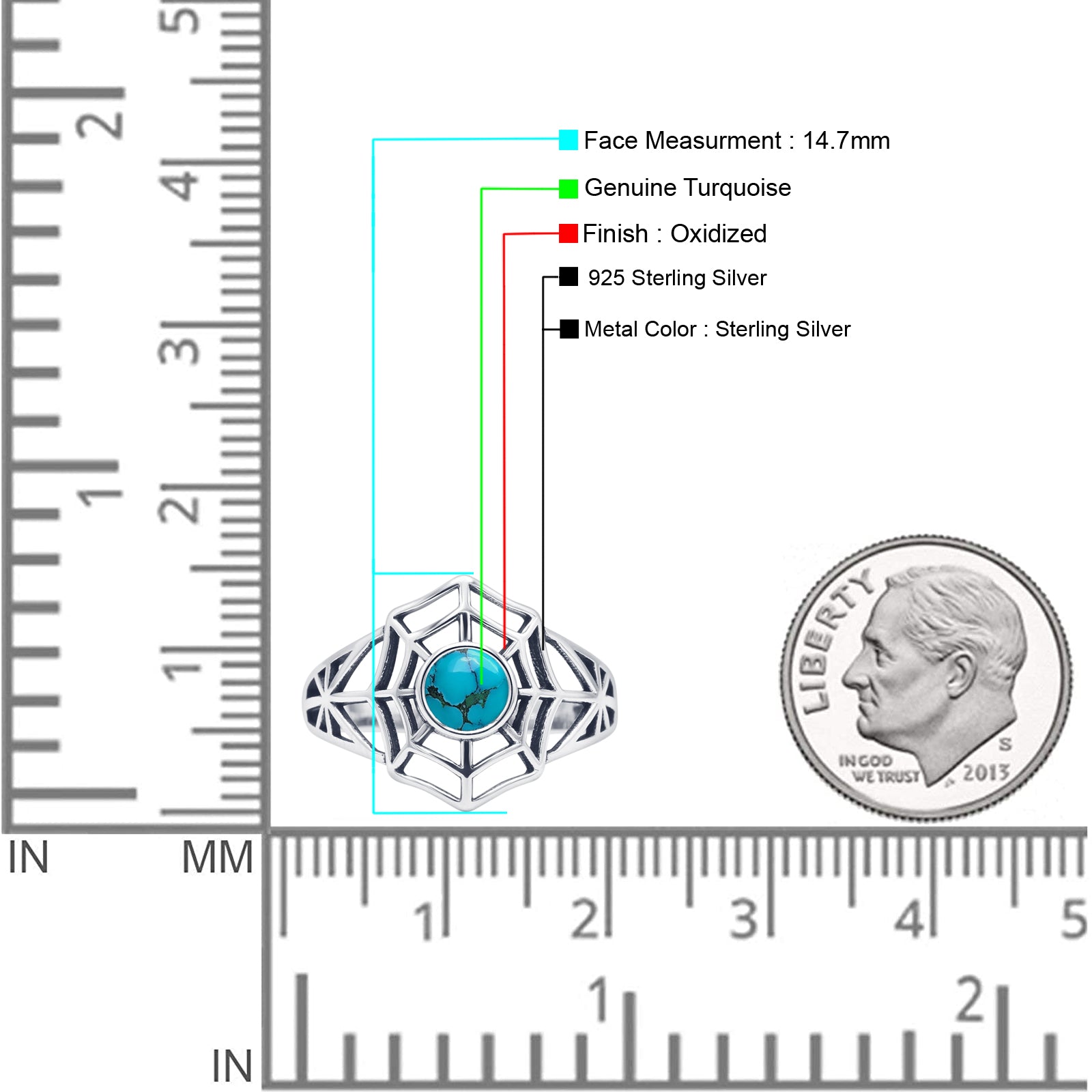 ☉Ring Design: Round Turquoise Oxidized Filigree Spiderweb Ring.