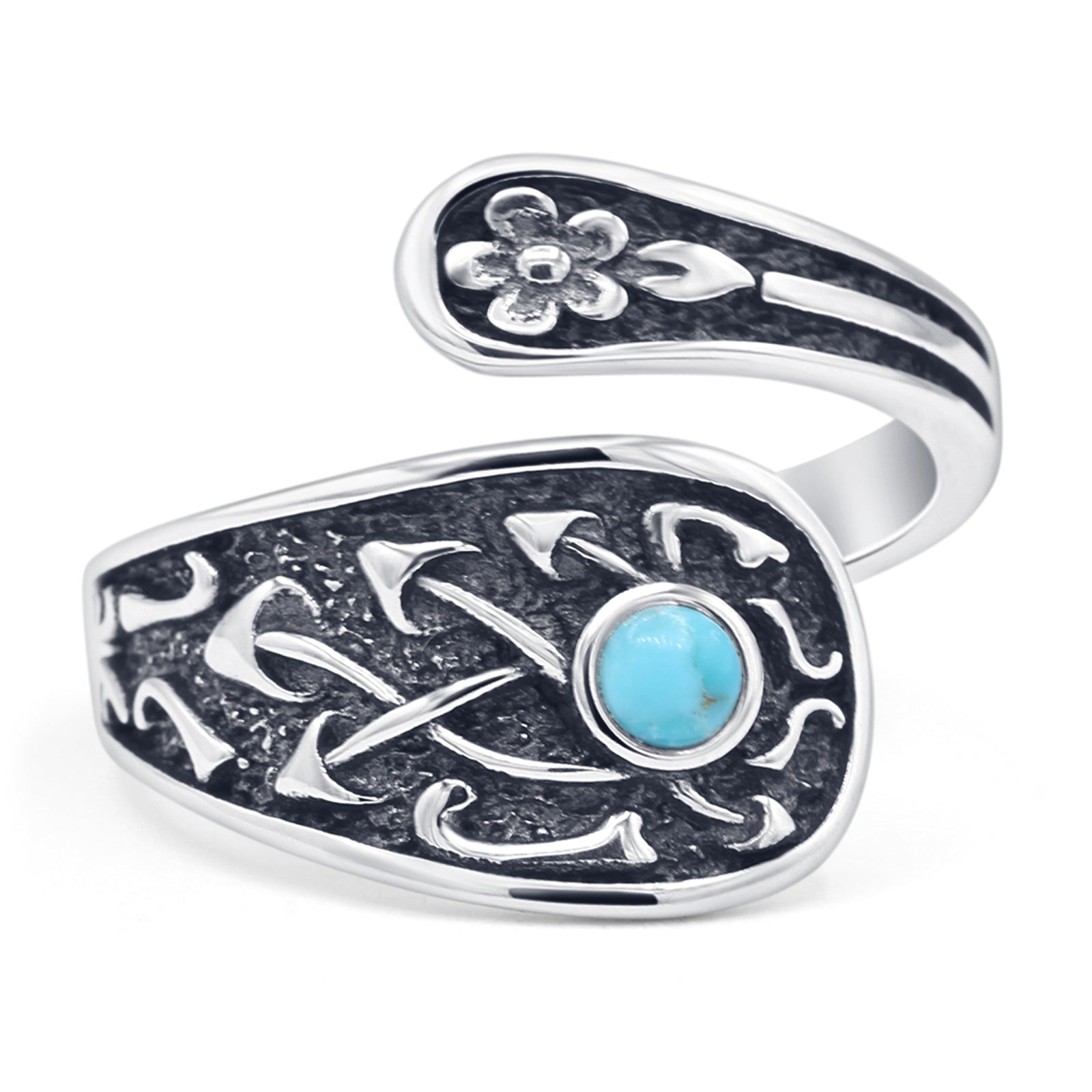 ☉Ring Design: Oxidized Round Turquoise Spoon Ring.