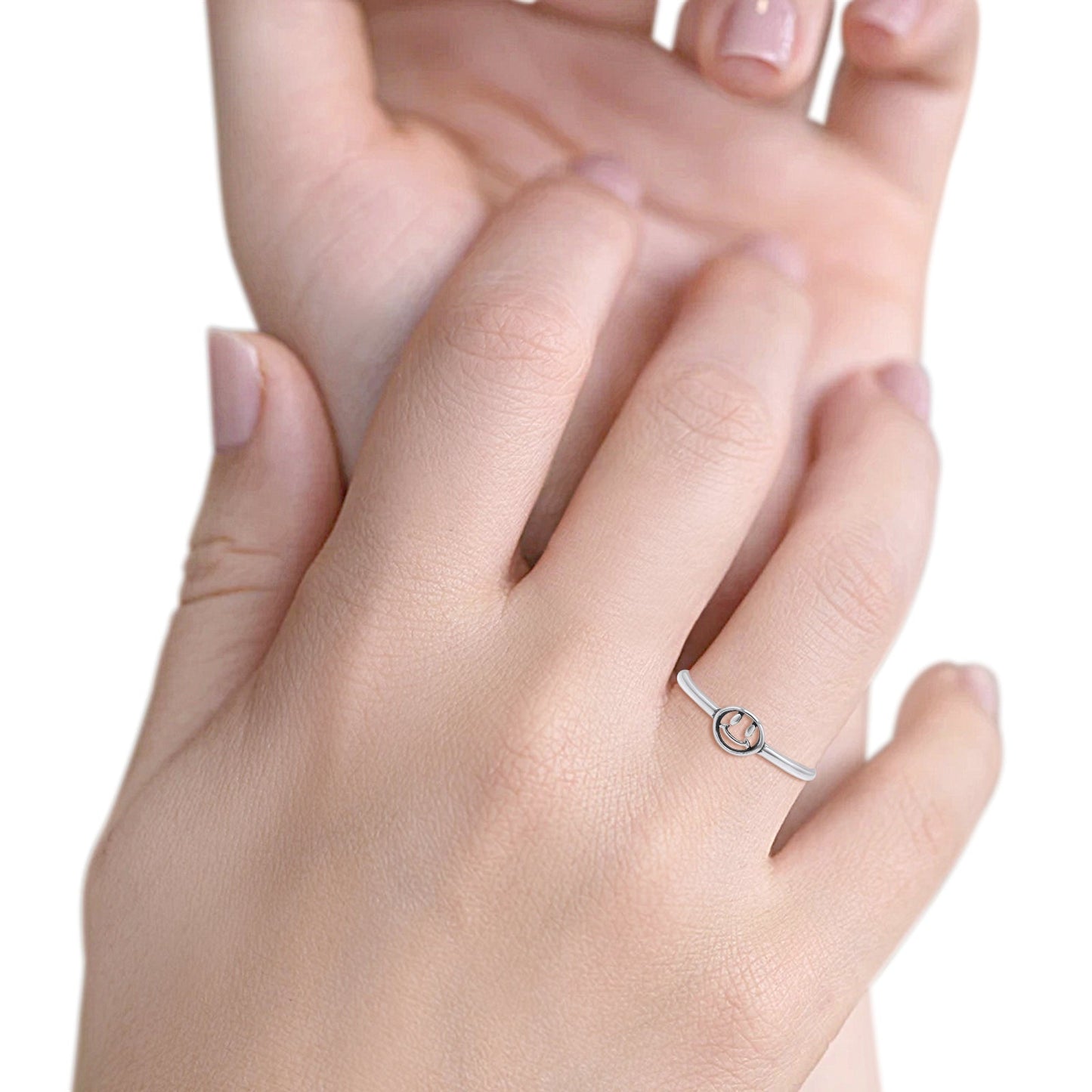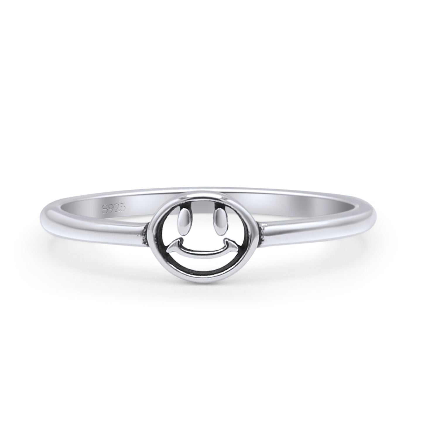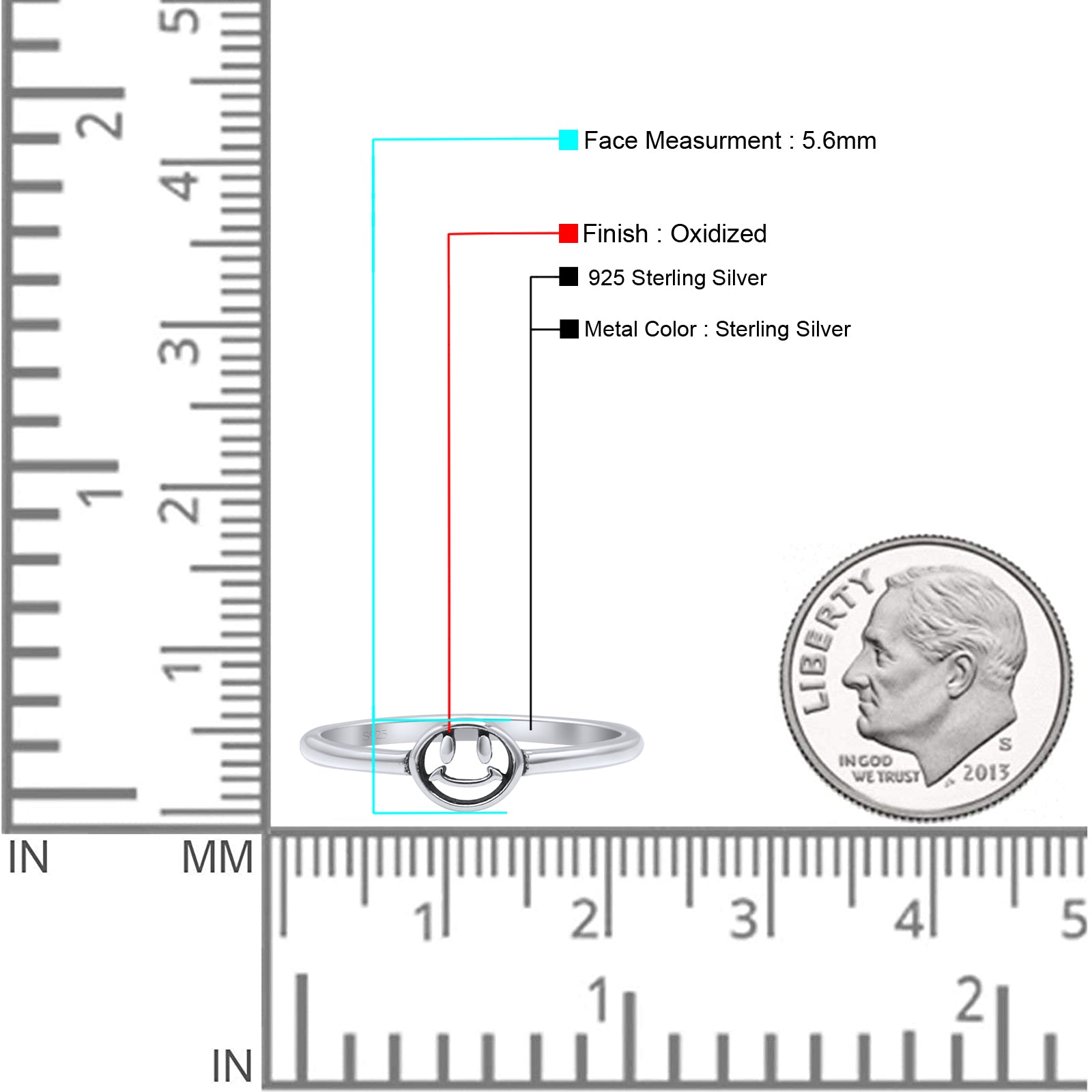 This cute 5.6mm happy face ring is made from real 925 sterling silver with a dark oxidized finish. It has a simple smiley face design that brings a fun, happy touch. The plain band is easy to wear every day and feels light on the finger. A perfect, affordable ring for gift shops, jewelry sellers and anyone looking to add cheerful silver rings to their collection.