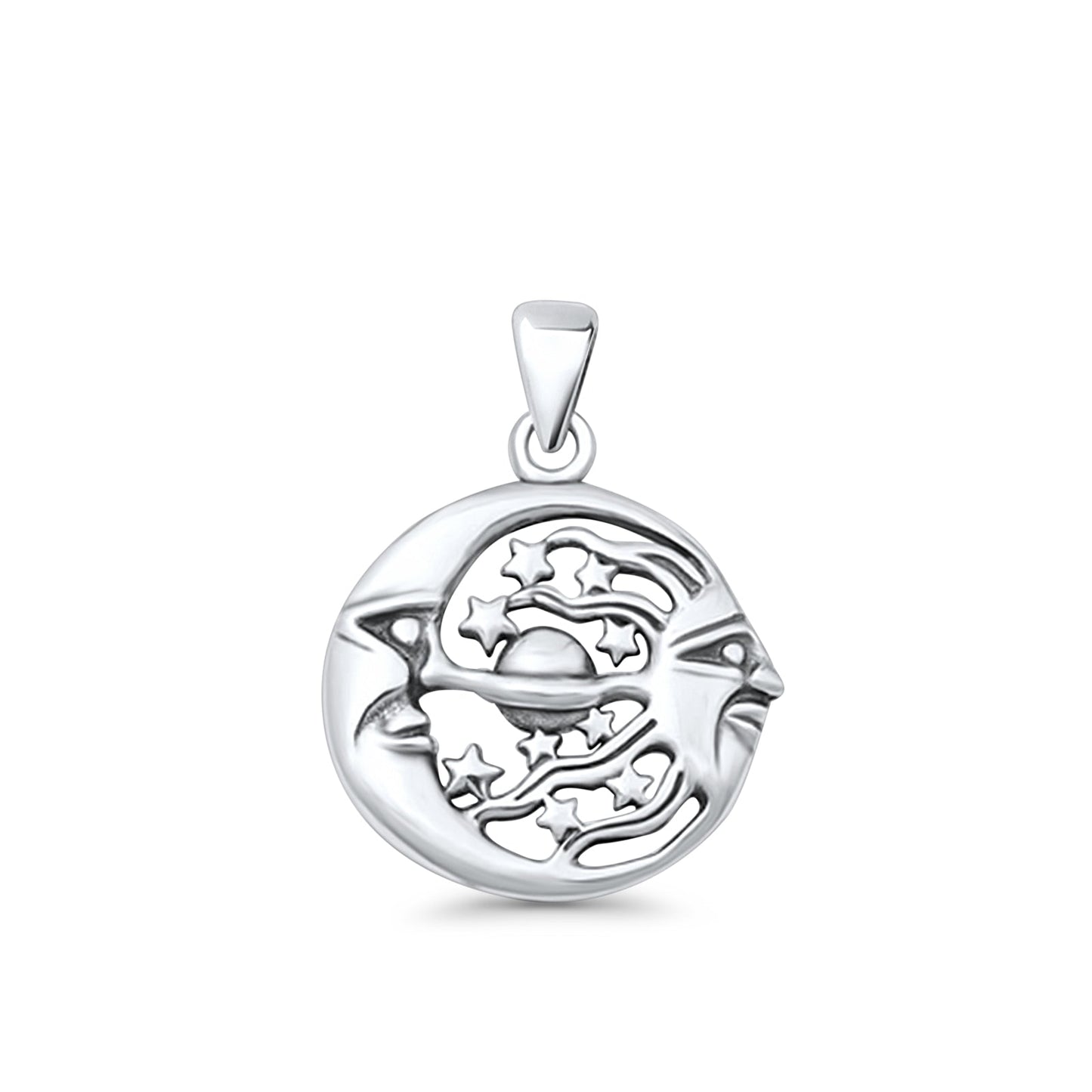 Sun Moon & Stars Pendant Oxidized 925 Sterling Silver Wholesale