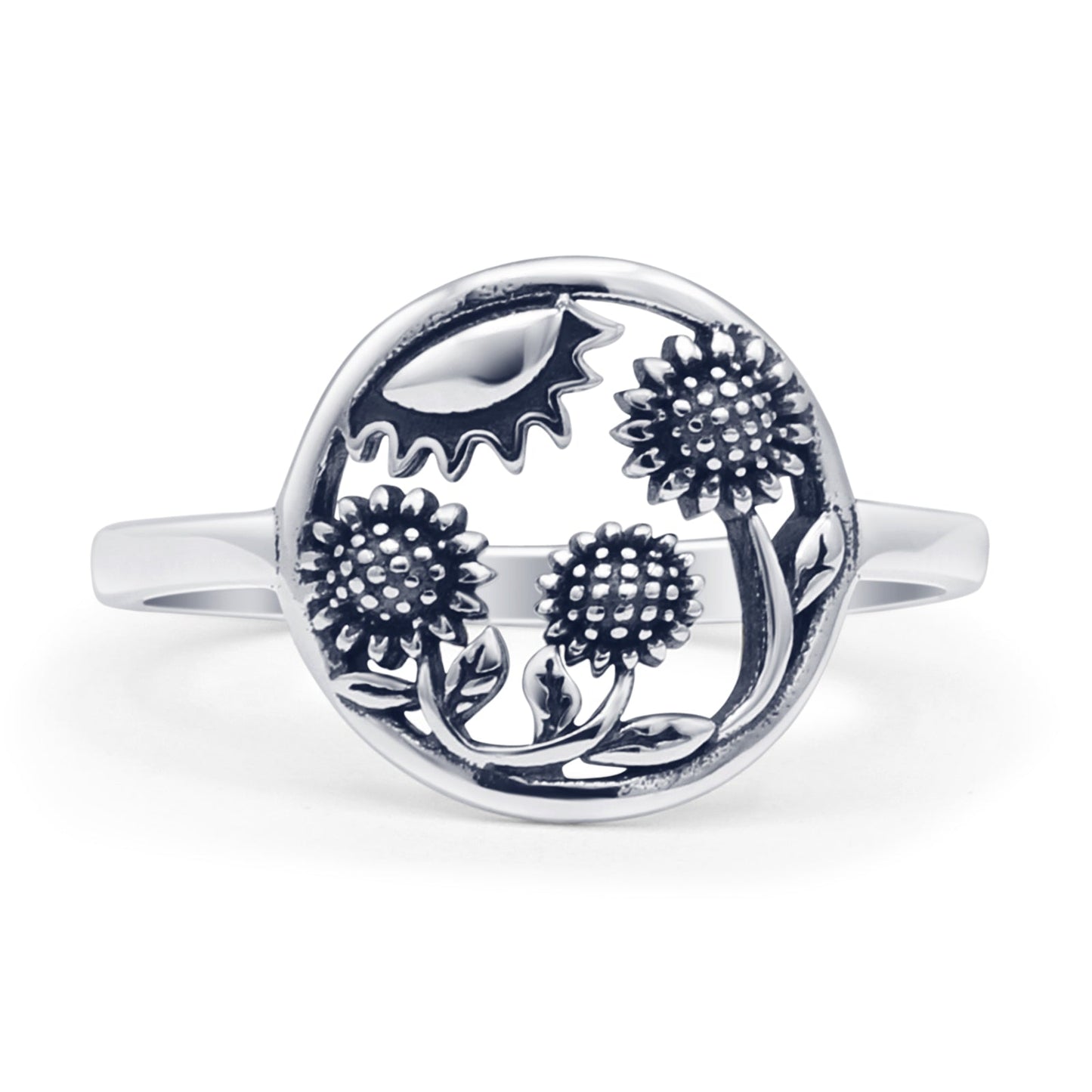 Bring a touch of sunshine to your store with this beautiful Sunflower Ring, made from 925 sterling silver with a vintage oxidized finish. The 11.5mm band features a detailed filigree sunflower design that feels both classic and modern. A bestselling gift item for boutiques, gift stores and online silver jewelry sellers.