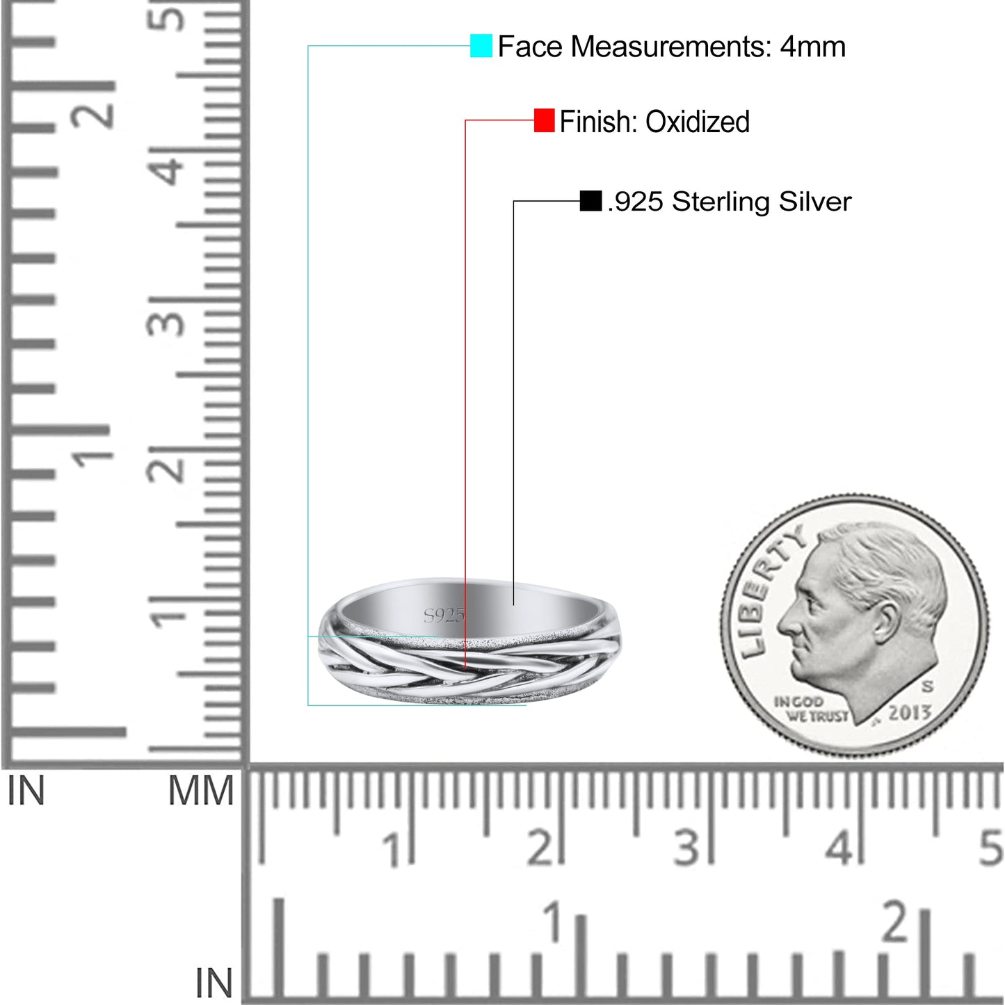 Thin Braided Band Chain Wire Style Ring Oxidized Thumb Ring (4mm)