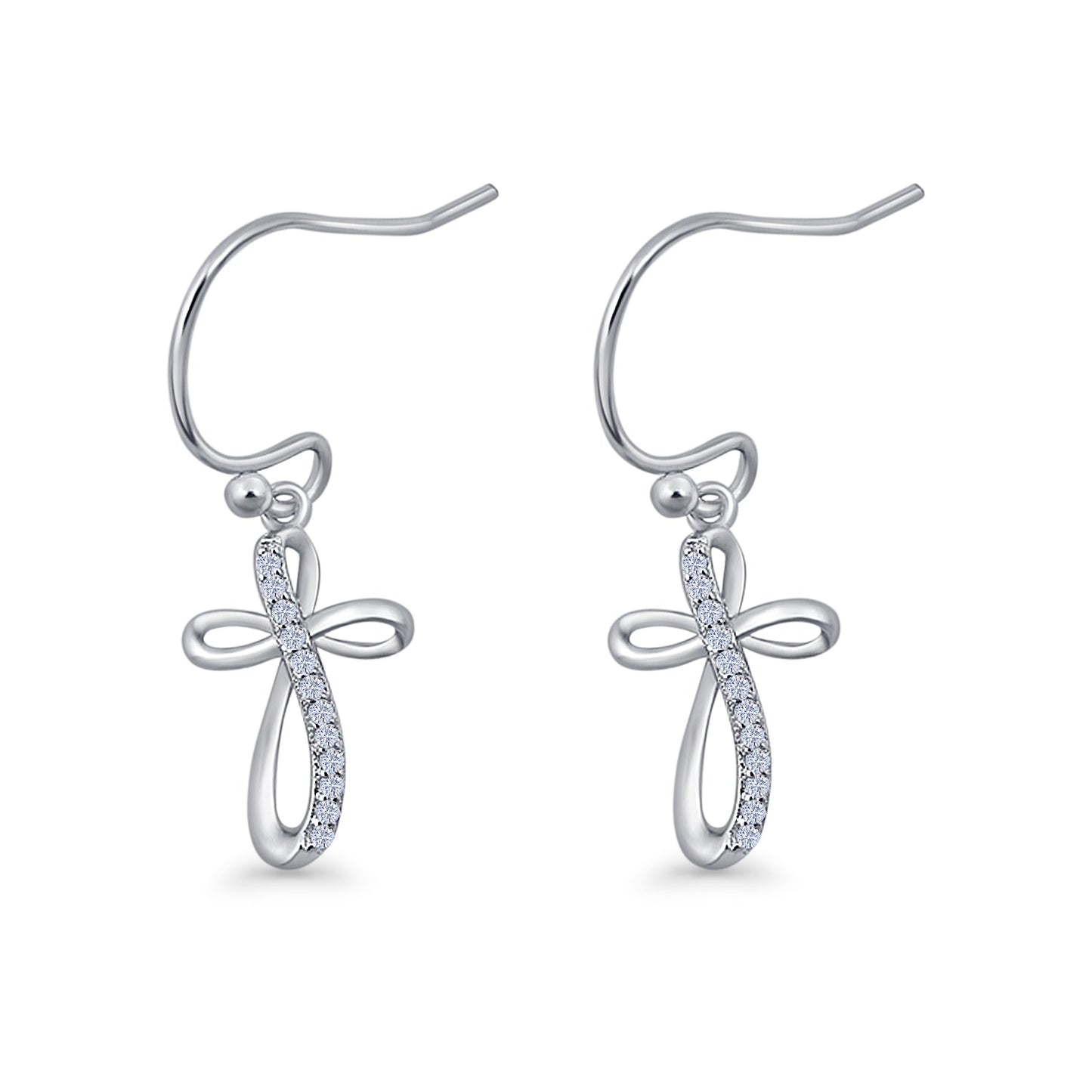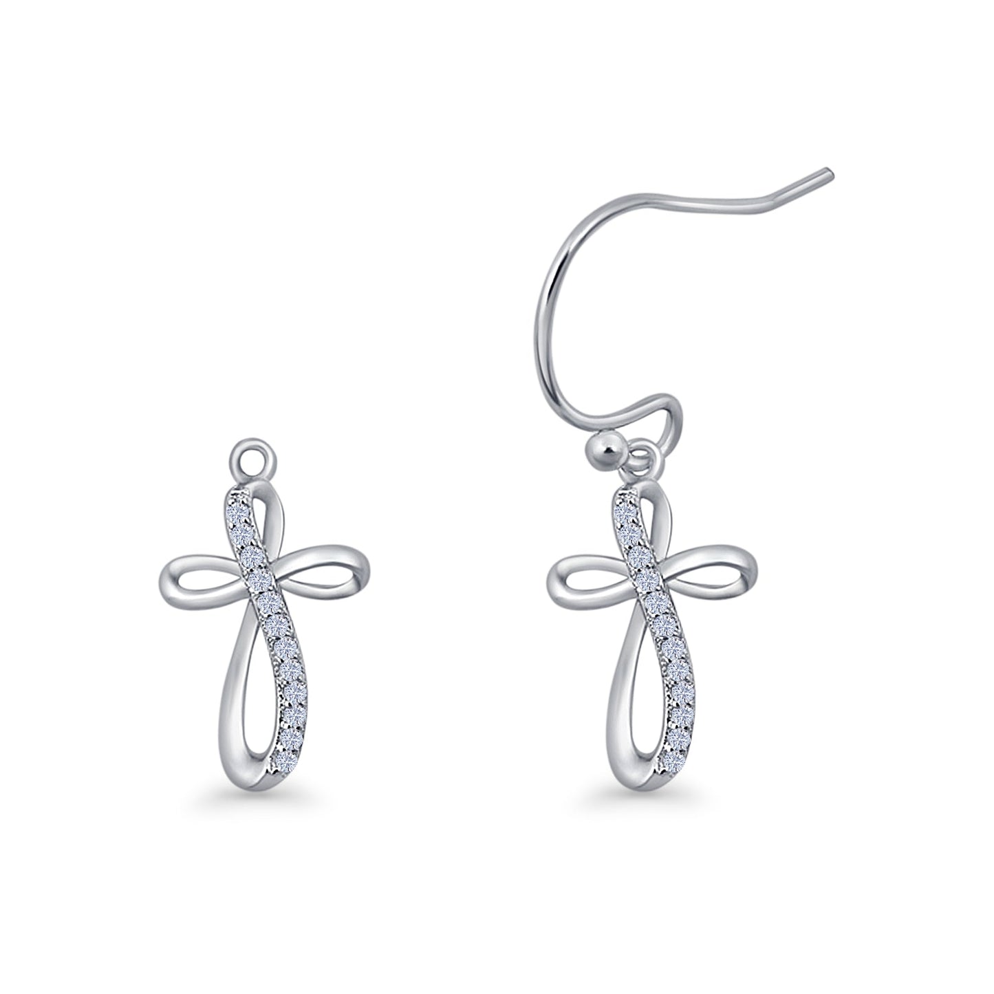 Twisted Cross Fishhook Earrings Cubic Zirconia
