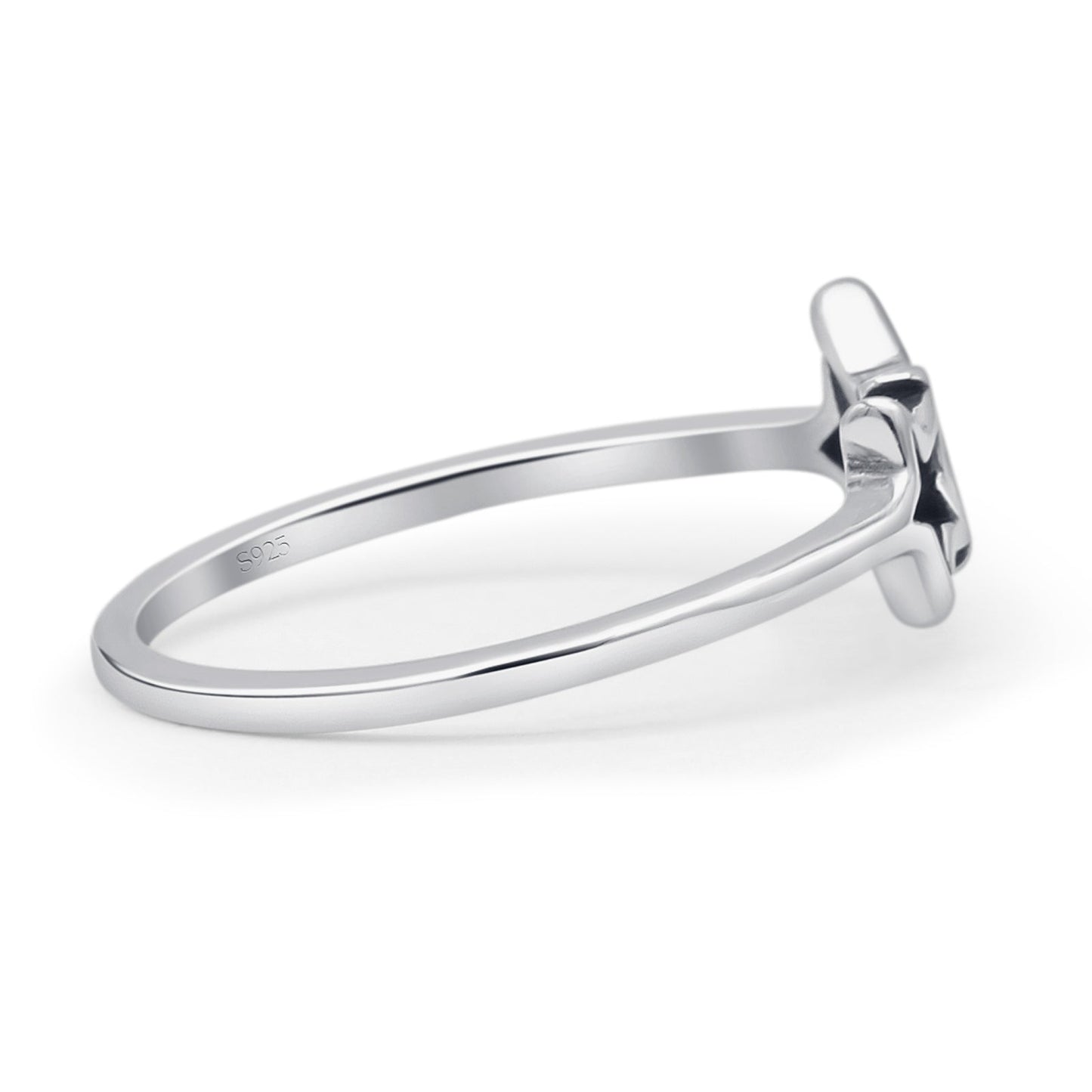 This 7.4mm two star ring has an oxidized 925 sterling silver vintage filigree open band design with a simple celestial motif. The open band and twin stars lend themselves to a piece with a certain symbolism for gift-giving. The ring works well for nature-inspired, bohemian, and boutique wholesale silver jewelry collections.