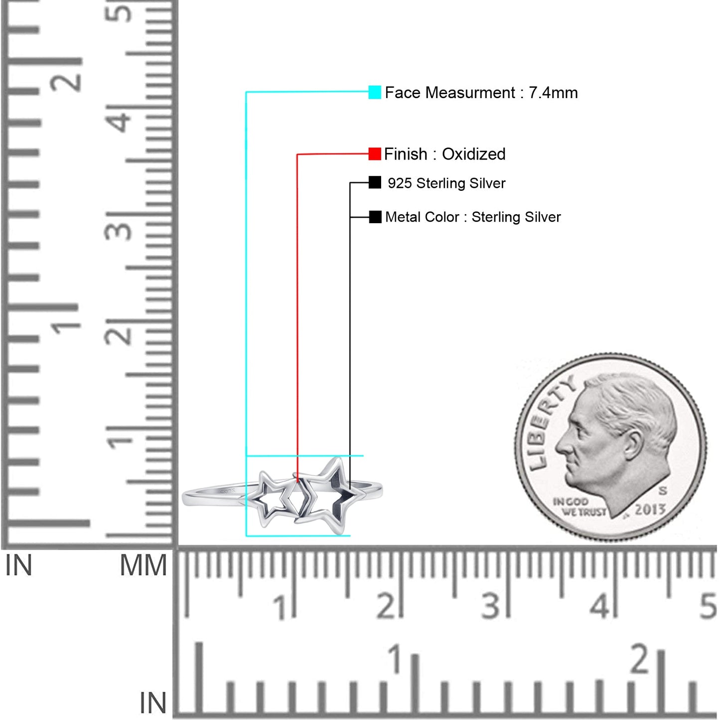 Two Star Ring Oxidized